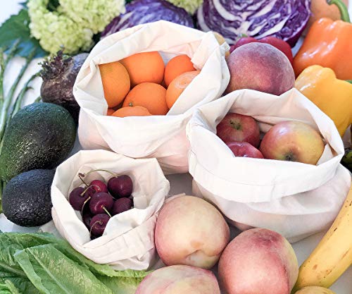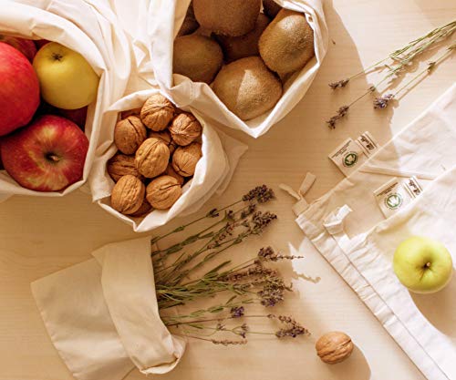 🍃 EVERYTHING STARTS WITH THE CUSTOMER: Supporting our customer’s Zero Waste Shopping goal and helping our Mother’s Earth without plastic are our #1 priorities. Cotton drawstring Produce Bags are available in different sizes including X-Large (14 x 18 in), Large (12 x 15 in), Medium (12 x 10 in), Small (8 x 10 in) and X-Small (6 x 9 in) so you’ll be covered whether your produce is X-large or small